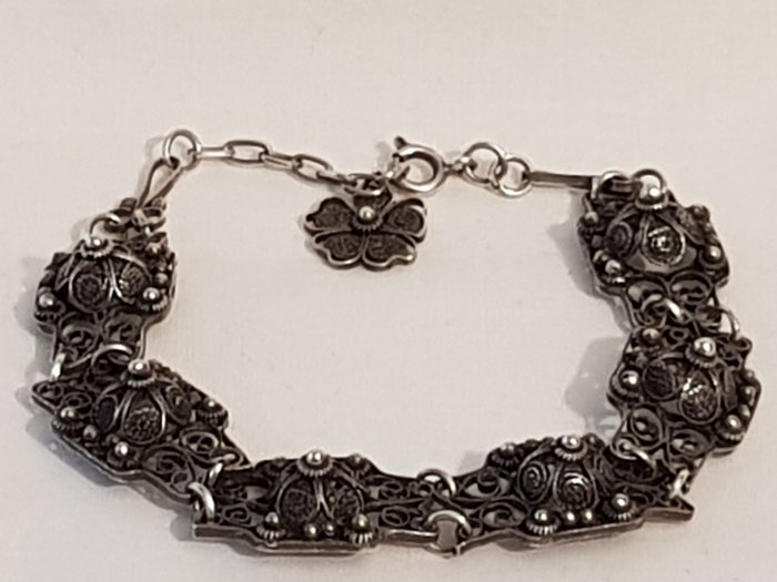 Mooi gaaf filigrain werk. Zilver getoetst en vervaardigd omstreeks 1920.