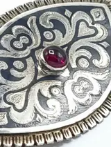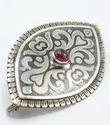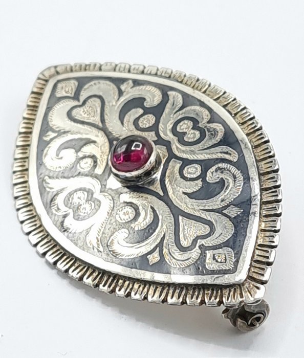 Antiek Niello Zilveren Brochemet Granaat steen