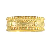 Imagine wearing an antique wedding band from circa 1700, a rare piece crafted in 18K yellow gold, with alternating lozenge shapes and stylised floral motifs set upon delicate filigree wirework. This beautiful ring, with its Baroque charm, is not just a piece of jewellery; it’s a tangible connection to history, symbolising the enduring nature of love. To wear such a ring as a symbol of your marriage is to carry a piece of timeless elegance, a link to centuries past, as you begin your own journey together.