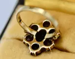 Conditie: prachtig voor leeftijd staat, Granaten zitten sterk en ze zien er mooi uit, de ringrail is in zeer goede staat, goud is licht gepolijst, in juwelendoosje