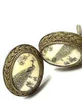 Antique China from 1900 Painting Peacock - 800 Zilver - Oorbel