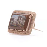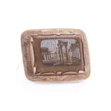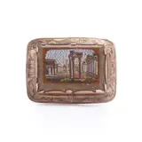 Antiek Italiaans 9kt. geelgouden en goudsteen Micro Mozaïek broche, voorstellende een historische plek in Rome.