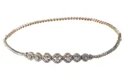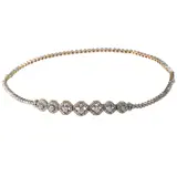 This remarkable Victorian creation, circa 1870, offers a versatile transformation from two bracelets into a captivating dog-collar necklace. Crafted in 18K red gold with silver details, the piece showcases a dazzling display of 173 diamonds. The ornate bracelet features seven old mine brilliant-cut diamonds, totalling approximately 1.50 carats, alongside 110 rose-cut diamonds and senailles. The unadorned bracelet adds another 56 rose-cut diamonds and senailles, all harmoniously arranged to evoke the grandeur of the Grand Victorian period. This jewel offers the wearer the freedom to style it as a striking necklace or as two elegant bracelets, blending opulence and adaptability with ease. A true conversation piece, it is a testament to 19th-century craftsmanship and destined to captivate collectors and enthusiasts alike.