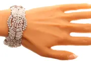 This platinum bracelet from the early 1950s is a substantial example of mid-century diamond craftsmanship. Its broad, articulated construction allows the piece to fall naturally on the wrist, while more than fifty-four carats of diamonds in high colour and clarity create a striking, deliberate brilliance. The assured design and well-resolved structure reflect the period’s renewed appetite for luxury, achieved through discipline and technical competence rather than excess.
