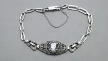 Fraaie zilveren Art Deco armband met een Blauwe Spinel(Getest)