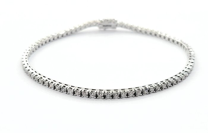 Tennisarmband bewerkt in witgoud met diamanten met dubbele veiligheidssluiting 18k (750)