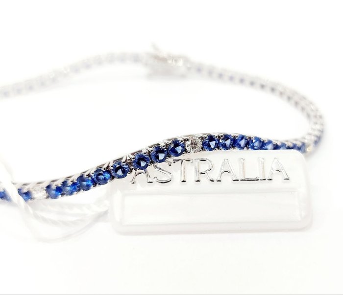 Tennisarmband "Astralia" in witgouden saffieren en diamanten 8,55 ct 0,70 ct - 18 kt (750) - 11,30 gram