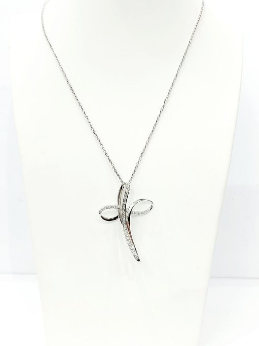 Collier en kruis hanger met diamanten in Witgoud 5.70 gr - 0.45 Ct - 18kt - (750)