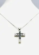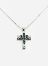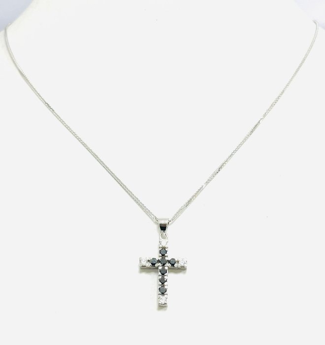 Collier met Astralia kruis 0,50 ct zwarte diamanten en 0,30 ct witte diamanten in 18 kt witgoud
