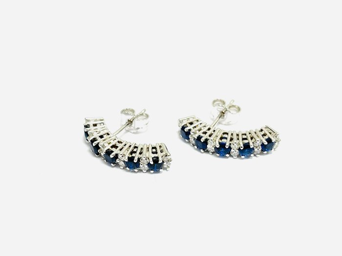 Oorbellen met 1,50 ct saffier en 0,50 ct diamanten in 18 kt witgoud gesigneerd Astralia