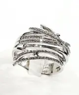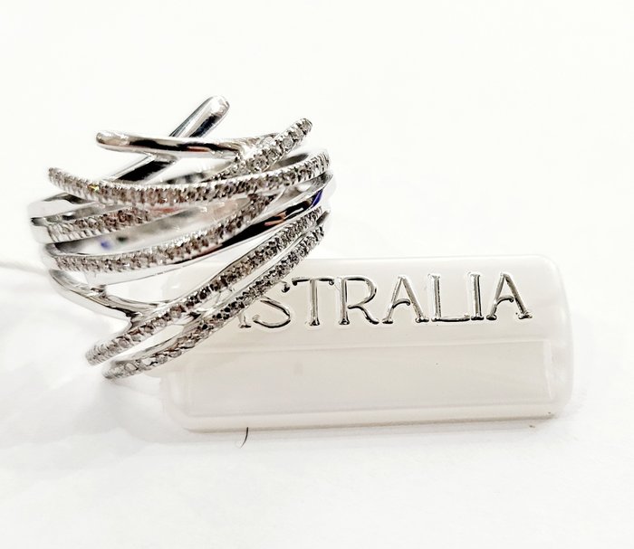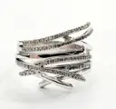Damesring gesigneerd Astralia meerstrengs fantasieband bewerkt in 750 goud en diamanten - 10,80 gram