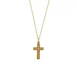 Singapore schakelcollier met platte kruis hanger, uitgevoerd in geelgoud en in reliëf met een kruis met diamantbewerking in witgoud. De zuiverheid van het goud is 18 kt (750/1000). Verborgen clipsluiting met handtekening van Federico Buccellati. Gemaakt in Italië.
