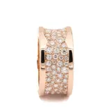 Iconische damesring uit de populaire B.zero1-collectie van Bvlgari. Gemaakt in 18k roségoud en bezet met naar schatting 2,10 karaat sprankelende ronde diamanten.