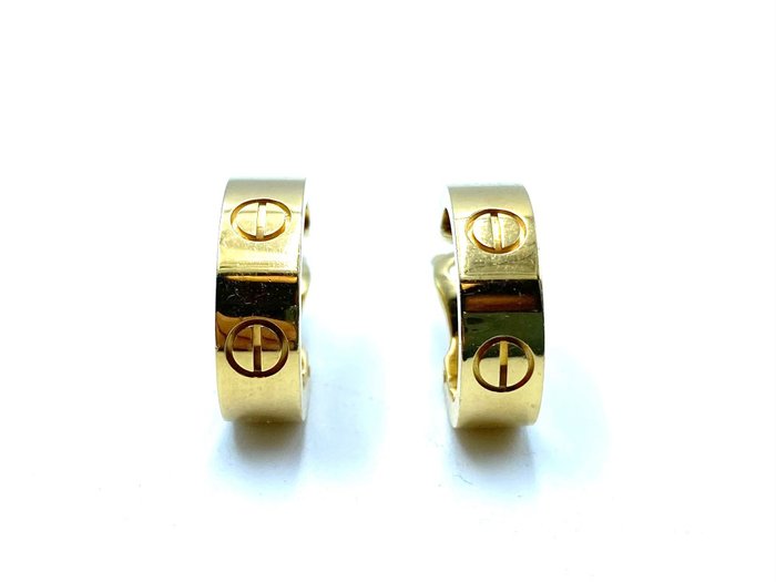 Cartier liefdesoorbellen in geel goud, totaal gewicht 12,1 g, originele doos maar heeft geen garantie.