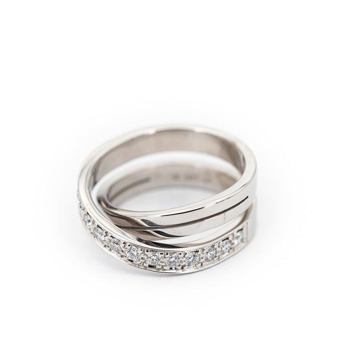 Etincelle de Cartier ring, 18kt witgoud, bezet met 17 briljant geslepen diamanten van in totaal ongeveer 0,58 karaat. Deze delicate collectie straalt elegantie en verfijnde eenvoud uit.