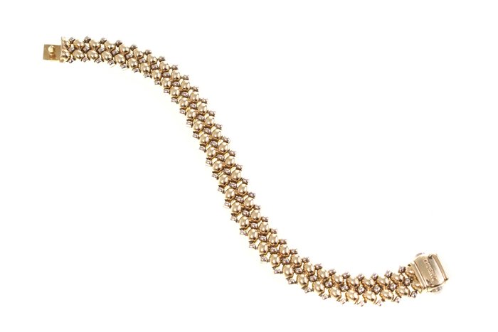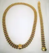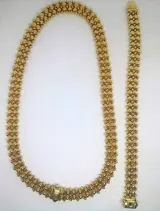 "Chimento" set bestaande uit collier en armband van dezelfde lijn in 18 kt geel- en witgoud.