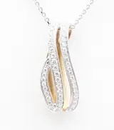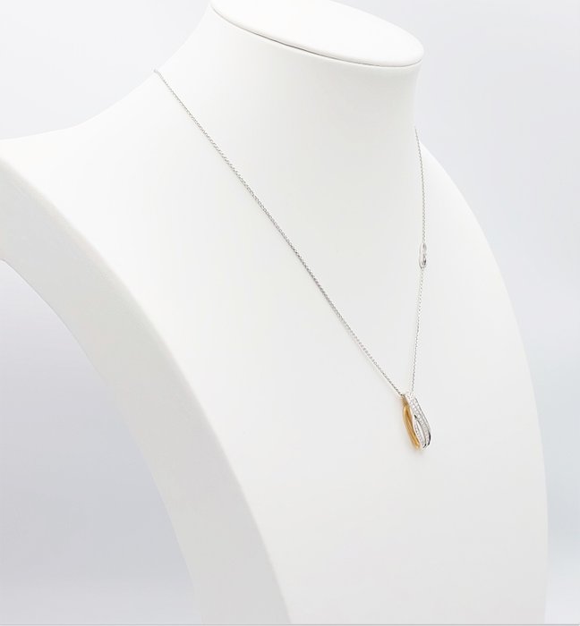 "Chimento" damescollier in 18 kt witgoud met fantasie hanger in wit en rosé goud met 48 briljant geslepen diamanten, elk 0,005 ct voor een totaal van 0,24 ct, kleur G, zuiverheid VS1. Karabijnsluiting.