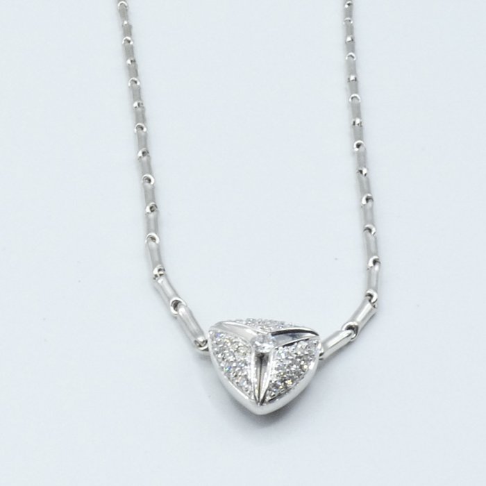 Halsketting en hanger van 18 kt witgoud met diamanten.