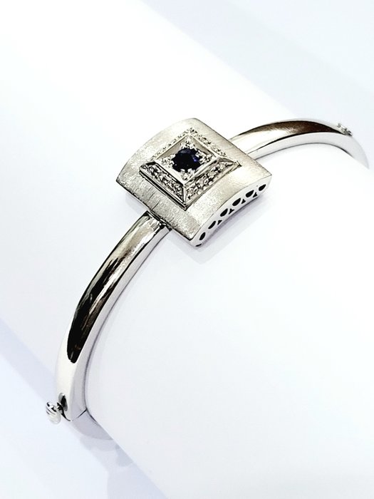 Stijve armband met saffier en diamanten gesigneerd Cierre met vierkant schild in 18 Kt 750% witgoud