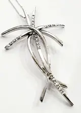 Collier met hanger in de vorm van een gestileerd kruis bewerkt in witgoud met 18kt natuurlijke witte diamanten (750%) - 7,72 gram