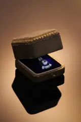 Art Deco pendant, circa 1930, in 18K white gold, centred on an octagonal onyx plaque with a prominent rose cut diamond in a milgrain bezel. The slender, stepped suspension is set with further rose cut diamonds and small rose cut diamonds, giving a crisp play of light against the black ground. Neat, architectural and quietly glamorous, it wears like a small piece of the Jazz Age.