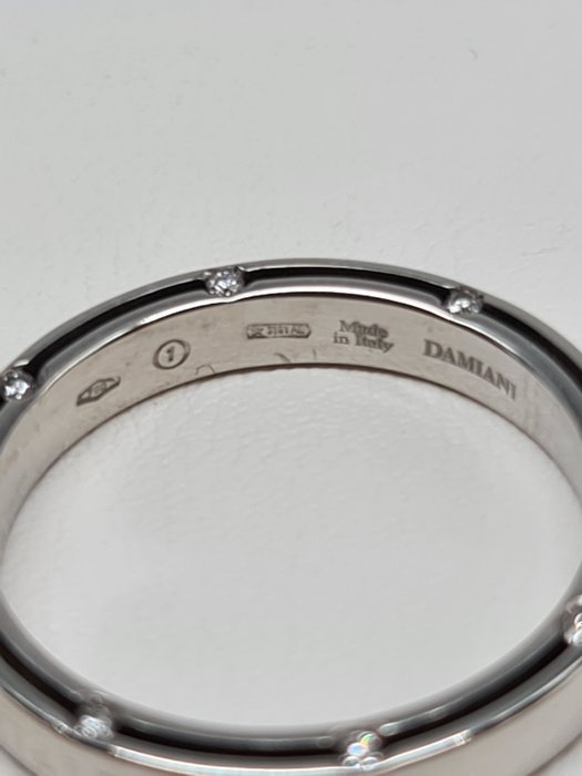Damiani D-zijring in witgoud en briljant diamanten ca. 0,10 ct, VVS-VS, maat 14/54, gewicht 4,1 g, in uitstekende staat.