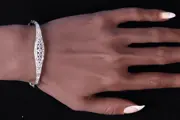 This exquisite 1920s Art Deco bracelet captures the spirit of a transformative era with geometric precision and timeless elegance. Rendered in 18K white gold, its design highlights a central motif adorned with a dazzling constellation of 67 natural diamonds. The brilliance extends gracefully beyond the centrepiece, with stones meticulously set along the bracelet’s arching form, shimmering as they flow around the wrist. The interplay of old brilliant and single cut diamonds, enhanced by delicate milgrain accents, evokes both luxury and artistry. A wearable masterpiece from the Roaring Twenties, this bracelet embodies modernity, glamour, and artistic revolution.