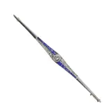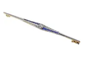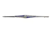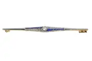 A striking Dutch Art Deco bar brooch, crafted circa 1920 in 18K yellow gold with a platinum or white gold top. Its elongated form is set with sapphires and old-cut diamonds, framed by subtle rose cuts and senailles. Once part of a transformable jewel, it now stands alone as a refined piece echoing the streamlined glamour of the Roaring Twenties.