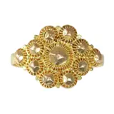 A marvel of Georgian craftsmanship, this 18K yellow gold ring from circa 1820, exudes a timeless charm. Crafted in the Southern Netherlands, it features an intricate design of eleven 'spiders' atop a shank formed by six twisted wires, each soldered side-by-side and adorned with alternating gold flowers and diamonds. This design, prevalent from the 16th to the 19th century in Holland, encapsulates not only the period's artistic inclinations but also a possible symbolism yet to be fully deciphered, offering a tangible connection to the rich cultural heritage of its time.