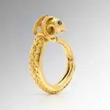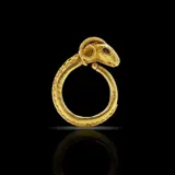Etruskische revival 21kt geelgouden ramskopring met ring aangebracht met decoraties in Etruskische stijl