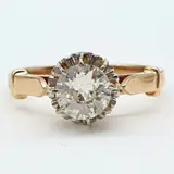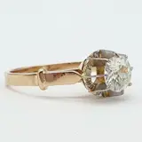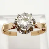 Ring gemaakt in 18k (750/1000) geel- en witgoud. Witgouden kroon met een grote briljant geslepen diamant van 0,78 ct, SI2-kwaliteit en K-kleur.