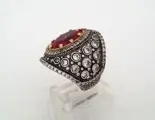 Vintage gesigneerde 925 sterling zilveren echte natuurlijke ovale robijn en heldere pasta art deco retro unisex ring.