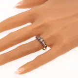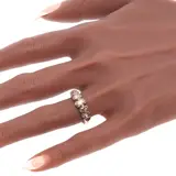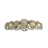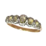 A charming Georgian ring from Belgium, made around 1830, set with seven rose cut diamonds in silver on red gold. Its gently graduating line and softly closed backs give it the quiet intimacy so often found in early nineteenth century jewels, while the foil behind the stones lends them a warm, subdued shimmer rather than a hard brilliance.