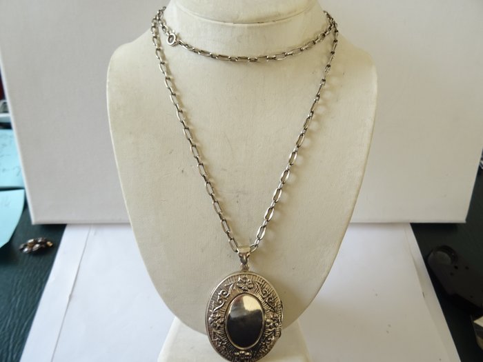 Grote ovale zilveren gesloten Medaillon
