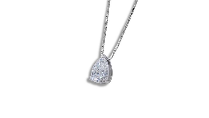 Oogverblindende hanger met een briljante diamant van 0,72 karaat. De sieraden zijn gemaakt van 18K witgoud met een hoogwaardige glans. Het wordt geleverd met een GIA-certificaat en een mooie juwelendoos.