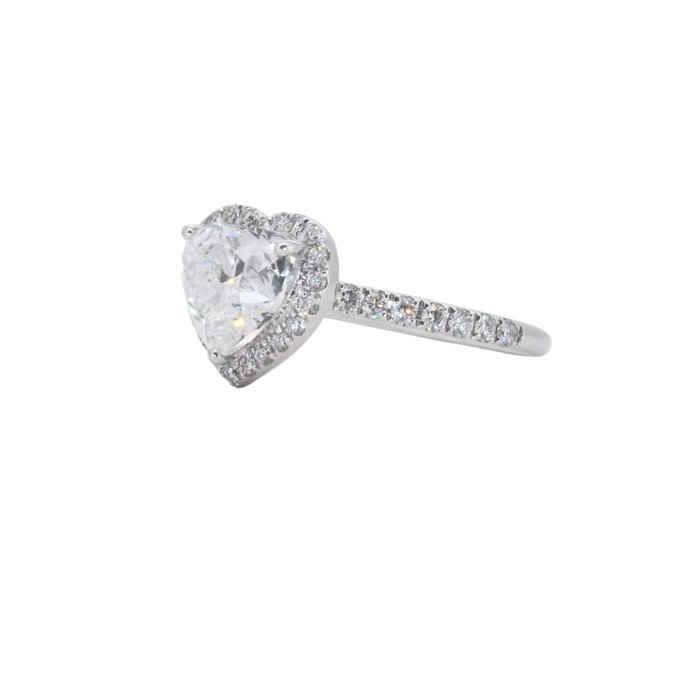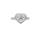 Een prachtige hart halo ring met een oogverblindende 2 karaat hartvormige natuurlijke diamant. Het heeft 0,27 karaat aan zijdiamanten die meer toevoegen aan zijn elegantie. De sieraden zijn gemaakt van 18k witgoud met een hoogwaardige glans. Het wordt geleverd met een mooie juwelendoos.