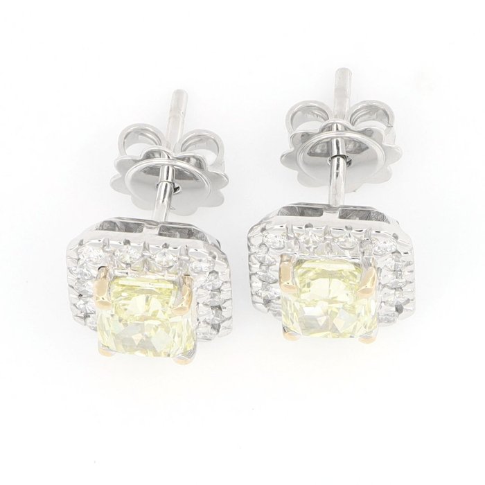 Oorbellen in 18kt witgoud met diamanten en fantasiediamanten