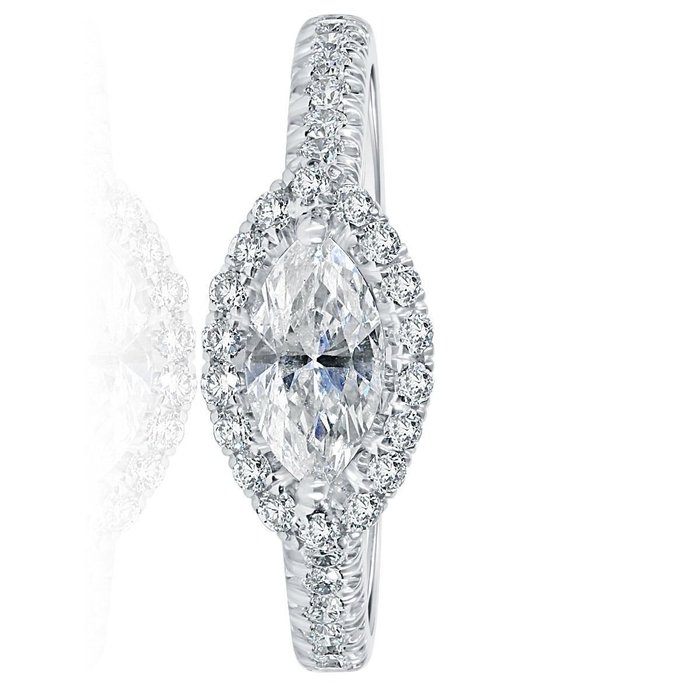 GIA gecertificeerde 1.52CTW diamanten I/VS2 Marquise geslepen 0.72CT middensteen en 0.80CT VS zuiverheid zijstenen gezet op 18K witgouden ring.