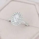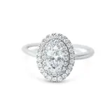 GIA Lab Report - 0,85 ct diamanten totaal karaatgewicht - 0,50 ct J/VS2 ovaal geslepen middensteen en 0,35 ct VS zuiverheid zijstenen gezet op 14K witgouden ring