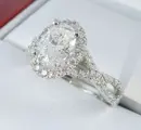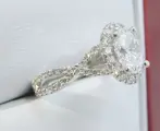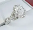 GIA gecertificeerde 1.40CTW diamanten F/SI1 Ovaal geslepen 0.80CT middensteen en 0.60CT VS zuiverheid zijstenen gezet op 14K witgouden ring.