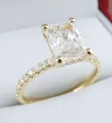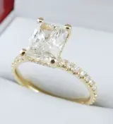 GIA gecertificeerde 1.40CTW diamanten I/VS2 Radiant geslepen 1.00CT middensteen en 0.40CT VS zuiverheid zijstenen gezet op 18K geelgouden ring