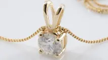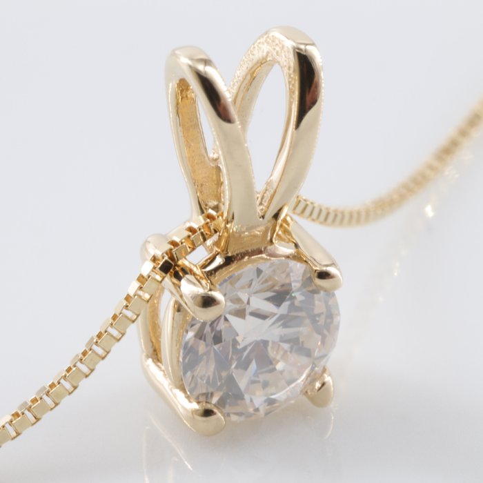 GIA Lab Report Solitaire 0.63CT H/SI1 diamanten hanger met een 14K geelgouden collier.