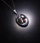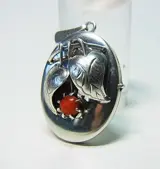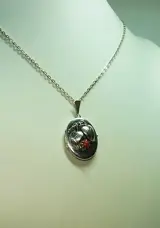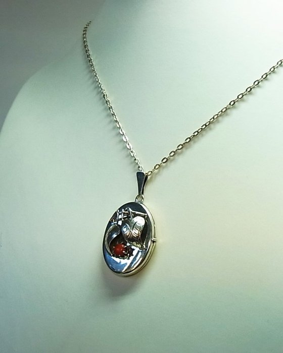 De elegante medaillonhanger is gemaakt van 835 zilver en dienovereenkomstig gekeurd. Het is ontworpen als een scharnierend, ovaal medaillon dat ruimte biedt voor het inlijsten van foto's of haarlokken.