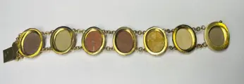 Het heeft 7 elementen van lavasteen cameo's van verschillende kleurschakeringen die gezichten uit het oude Rome afbeelden.