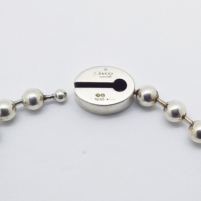 Gucci collier "Interlocking G boule" collectie in 925 zilver met groen geëmailleerde details en antieke afwerking