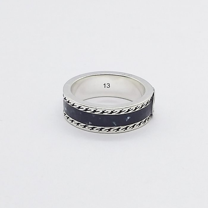 Gucci ring "Interlocking G" collectie in 925 zilver met zwart email met structuurafwerking