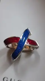 Gucci ring in rood en blauw geëmailleerd 925 zilver
