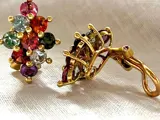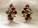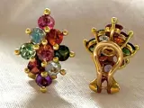 18K gouden oorbellen met stenen in verschillende kleuren (roze toermalijn, granaat, citrus, aquamarijn, blauwe topaas, peridoot, rodalieten, groene toermalijn en amethist).