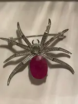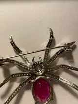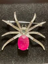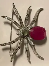 Een fantastische sterling zilveren spinnenbroche met zirkonia, robijn en toermalijn.