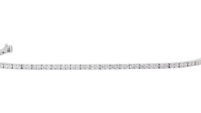 Een luxe tennisarmband met oogverblindende 3,15 karaat Round Brilliant diamanten. De sieraden zijn gemaakt van 18K witgoud met een hoogwaardige glans. Het wordt geleverd met een IGI-certificaat en een mooie juwelendoos.